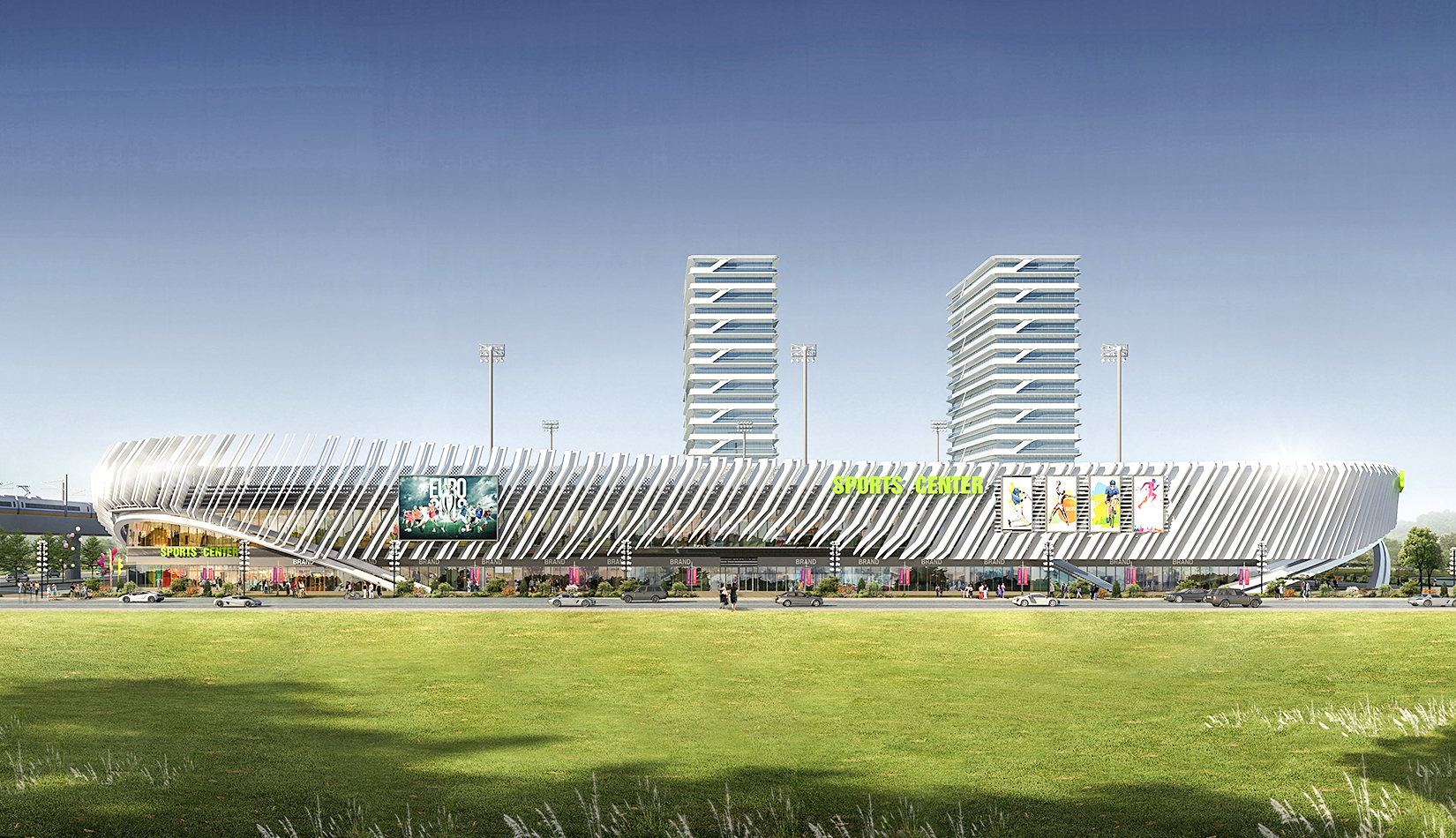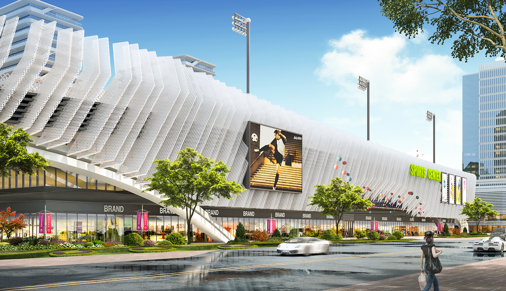 本項(xiàng)目提取高鐵動(dòng)車和海浪浪花的概念,用白色鋁板陣列與變化塑造出體育綜合體泛著浪花的海洋波浪造型。同時(shí)利用動(dòng)車動(dòng)感流線的造型設(shè)計(jì)出公寓的整體方案。海浪與動(dòng)車流線結(jié)合,不僅代表了青島的特色,更是詮釋了積極動(dòng)感的體育精神。將景觀引入建筑,以景觀打造形象,形成未來綜合體發(fā)展模式。