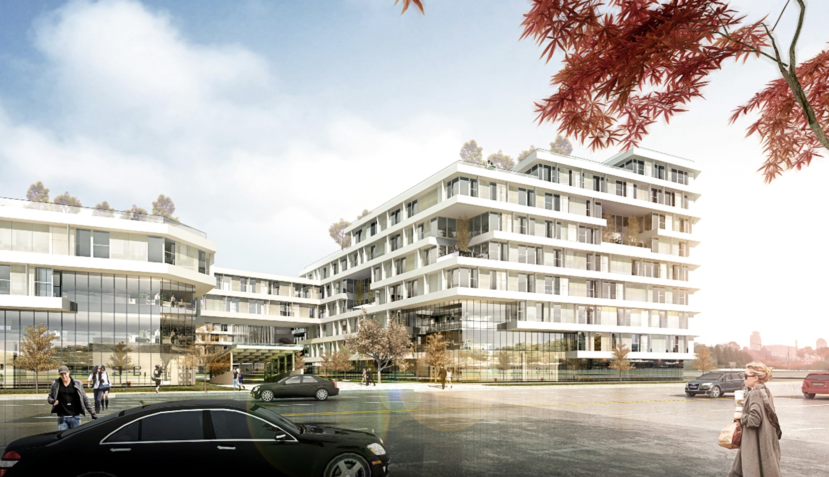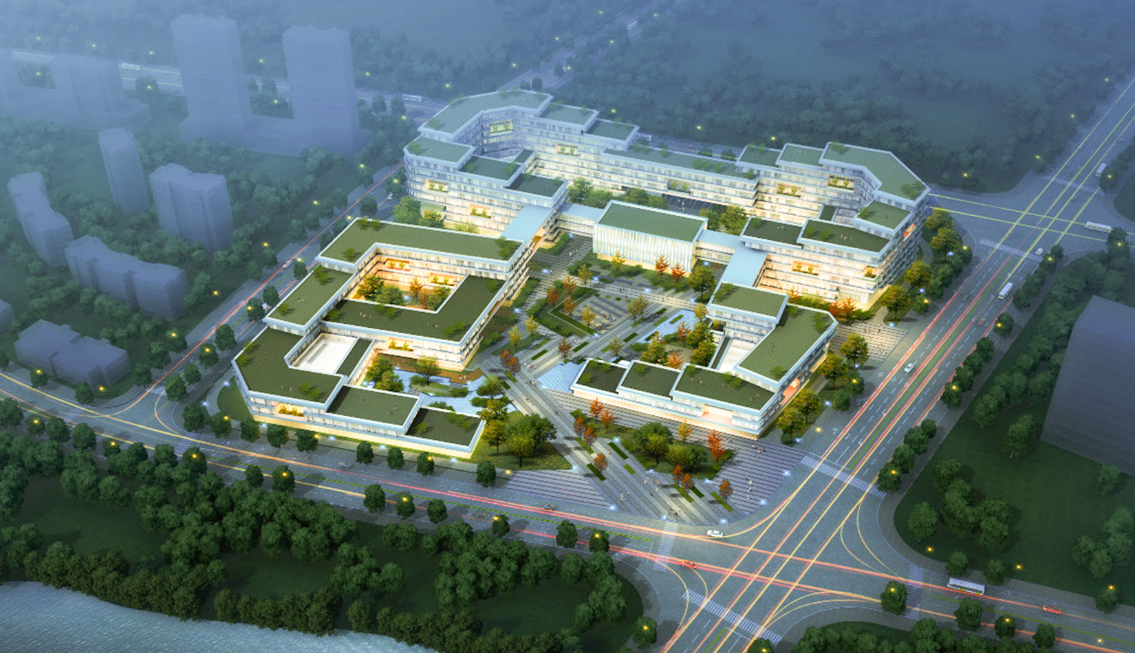 設(shè)計(jì)大、中、小三種空間尺度的景觀庭院,通過底層架空,使各空間既相互獨(dú)立,又互相滲透。增大建筑與景觀的接觸面,打造園林式辦公環(huán)境。