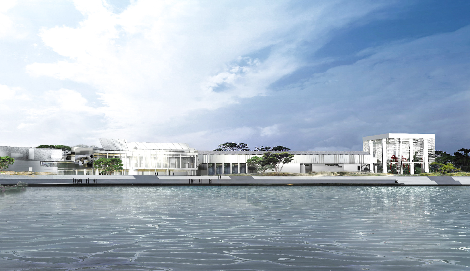 簡潔典雅的設(shè)計(jì)風(fēng)格,與濱海自然環(huán)境相協(xié)調(diào),同時(shí)聘請世界級景觀設(shè)計(jì)大師擔(dān)綱景觀設(shè)計(jì),體現(xiàn)了以美術(shù)館為主體的、以藝術(shù)創(chuàng)作、藝術(shù)展覽和藝術(shù)教育為主題的建筑和景觀空間,為當(dāng)?shù)厥忻窈椭型庥慰吞峁┮粋€(gè)與自然、與藝術(shù)充分交流的花園,為藝術(shù)家提供一個(gè)自由的、充滿各種可能性的創(chuàng)作基地。