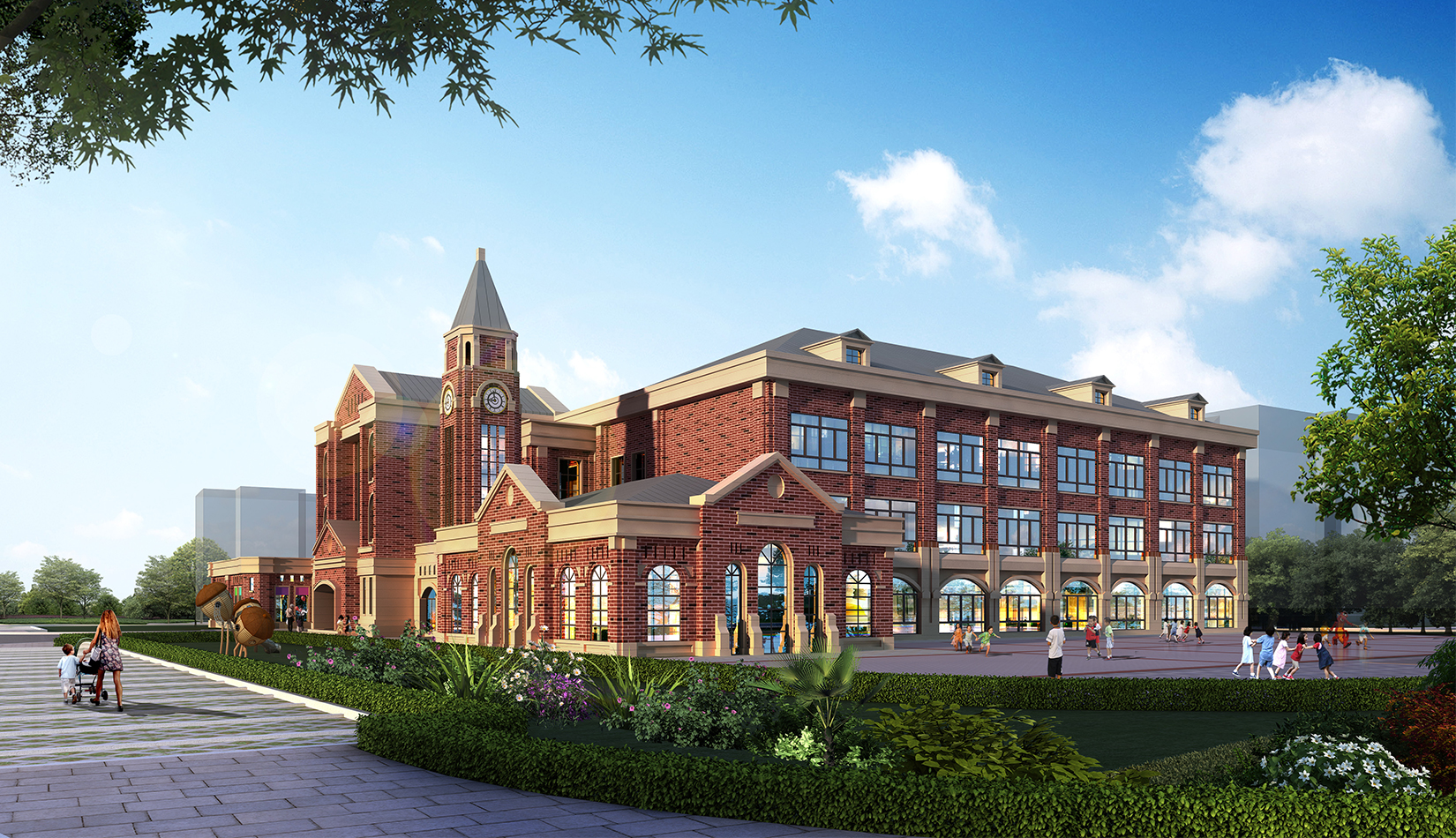 項(xiàng)目在設(shè)計(jì)中從幼兒特點(diǎn)考慮,通過活動(dòng)空間、明快色彩以及建筑造型的展示,意在創(chuàng)造符合幼兒心理的童話世界。