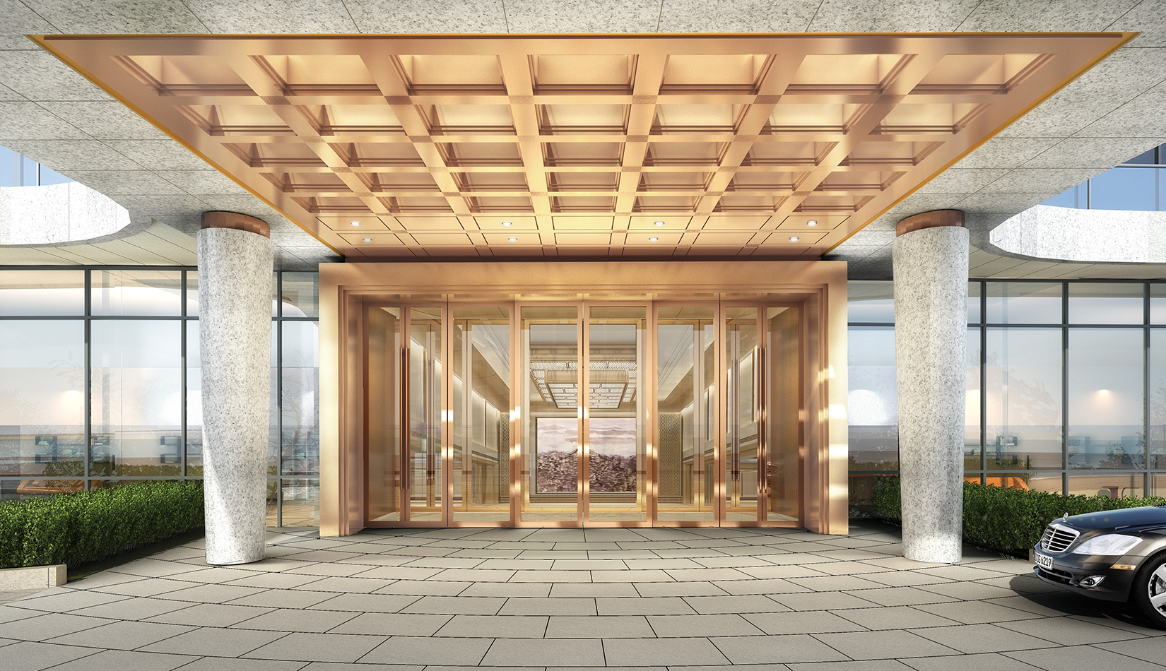 一層走廊---走廊為大廳一部分延續(xù)迎賓大廳的設(shè)計風(fēng)格,天花跌級有序,方圓向上,內(nèi)嵌如意紋理淺雕銅板, 增加厚重、文化與層次,墻面挺拔向上轉(zhuǎn)折有序,頭尾嵌入水紋樣式銅板雕刻,增加儀式感與莊重性,同時提升文化附加,簡練現(xiàn)代、精致細(xì)節(jié),突顯別致有序、莊重典雅。