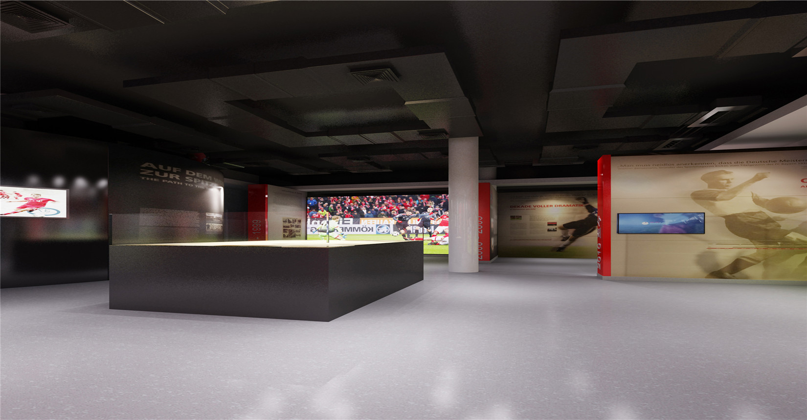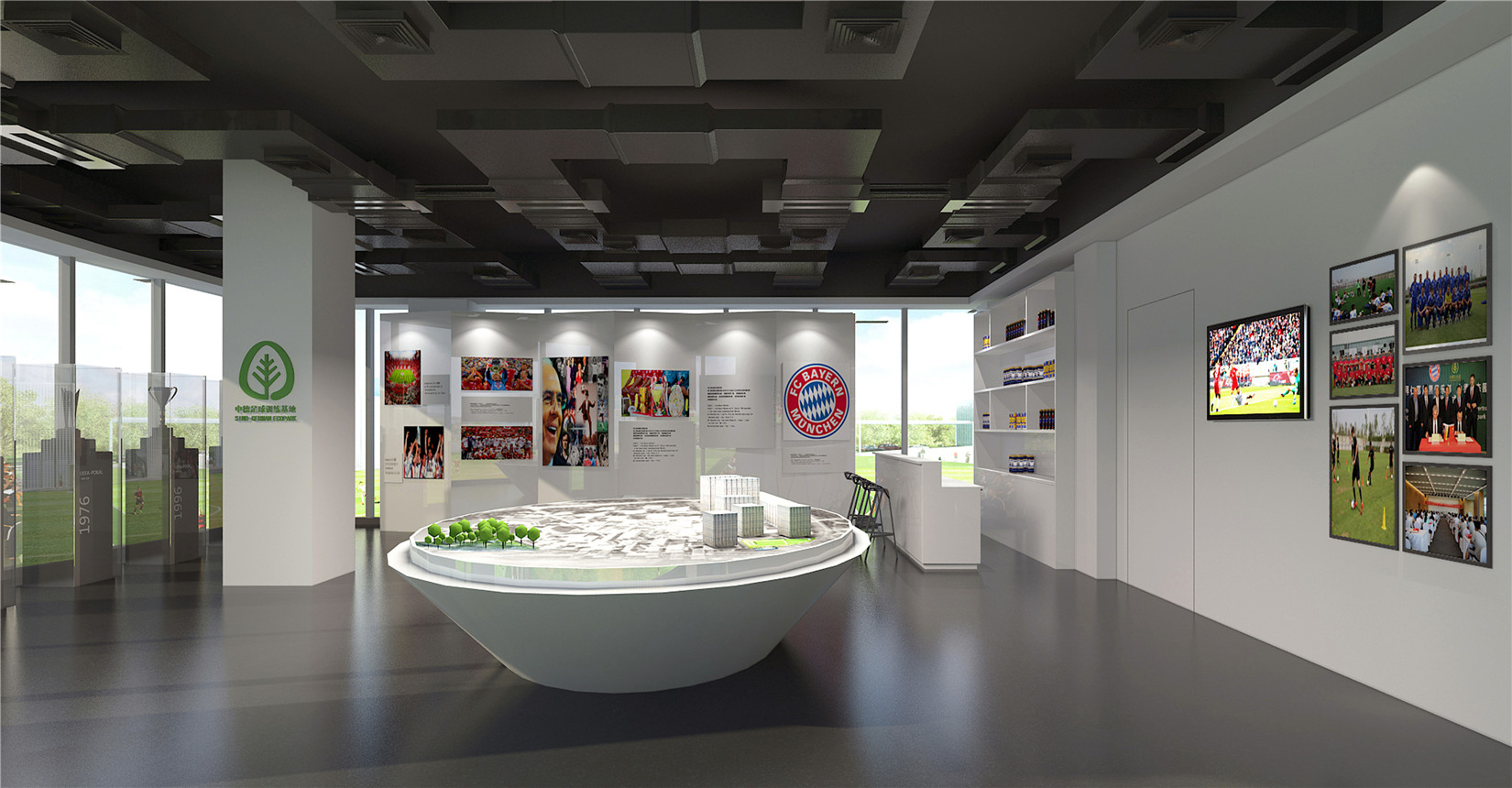 本次設(shè)計(jì)方案運(yùn)用后現(xiàn)代主義風(fēng)格的設(shè)計(jì)手法來展現(xiàn)中德兩國足球運(yùn)動的歷史及發(fā)展。迎合當(dāng)前環(huán)境下中德兩國在足球產(chǎn)業(yè)方面進(jìn)行的交流與合作,是中德體育促進(jìn)足球培訓(xùn)、商務(wù)推廣的窗口平臺,向人們展示足球精神的人文內(nèi)涵與魅力。